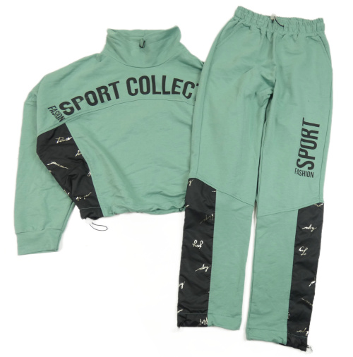 2set- zeleno-černá crop mikina s nápisem+ tepláky vel.170