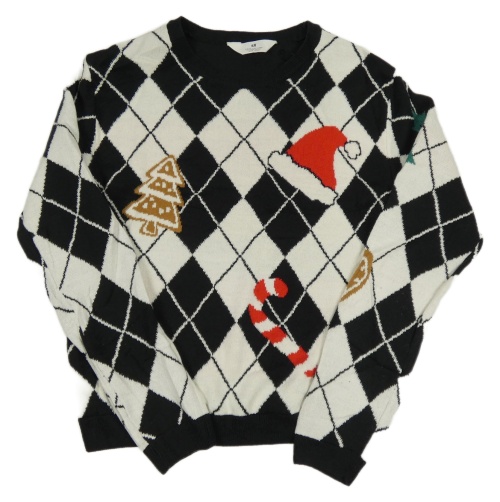 Černo-bílý lehký károvaný svetr s vánočními obrázky H&M