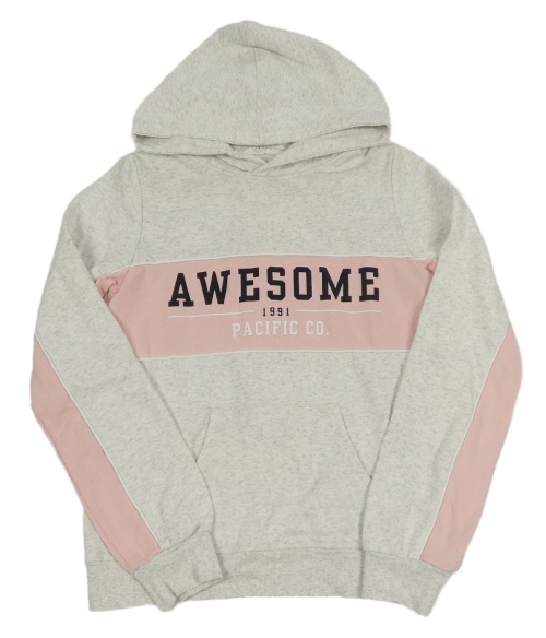 Světlešedo/růžová melírovaná mikina s nápisy a kapsou a kapucí H&M