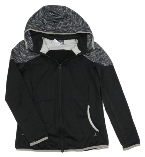 Černo-šedá melírovaná sportovní propínací funkční mikina s kapucí Decathlon