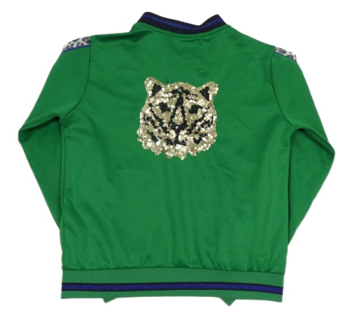 Zelená propínací sportovní mikina s tygrem z flitrů D-zine