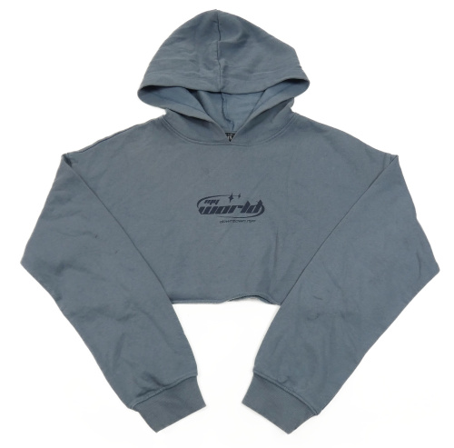 Tmavošedá oversize crop mikina s nápisy a kapucí New Look