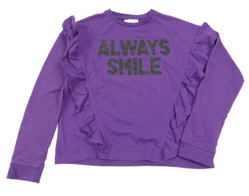 Fialová mikina s nápisem a volánky D-zie