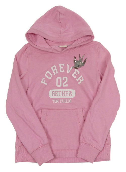 Růžová mikina s nápisem a kapucí Tom Tailor