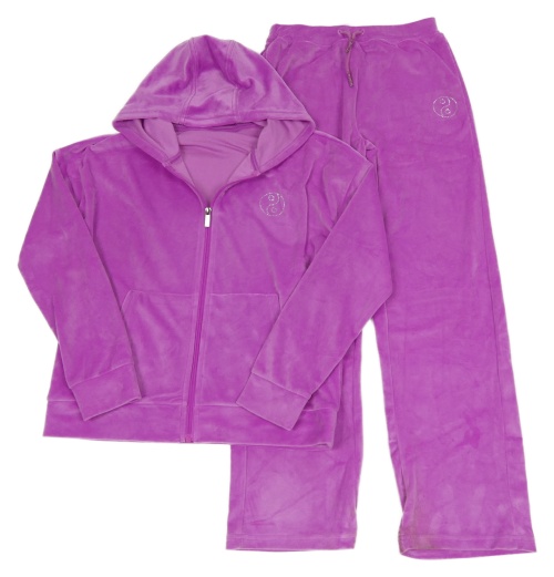 2 set - fuchsiová plyšová propínací mikina s kapucí + tepláky