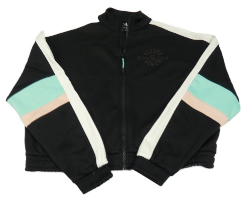 Černo-bílo-tyrkysovo-růžová propínací sportovní crop mikina s potiskem C&A