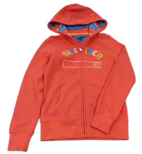 Červená propínací mikina s nápisem a kapucí Tommy Hilfiger