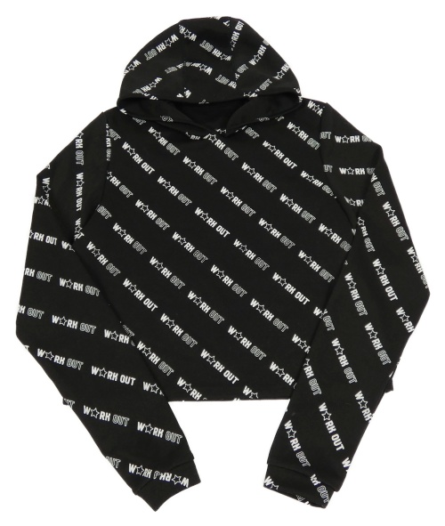 Černá crop mikina s nápisy a kapucí