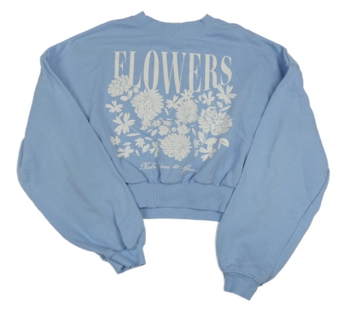 Světlemodrá crop mikina s květy a nápisem H&M