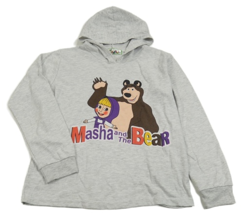 Šedá melírovaná slabá mikina s obrázkem a kapucí - Máša a medvěd