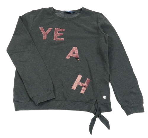 Tmavošedá melírovaná mikina s písmeny z překlápěcích flitrů Tom Tailor