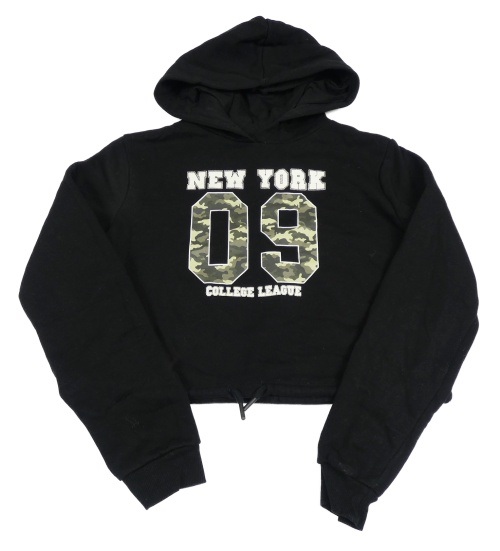 Černá crop mikina s army číslem a kapucí C&A