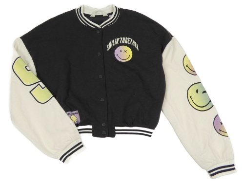 Tmavošedo-smetanová baseballová crop mikina se smajlíky a pruhy H&M