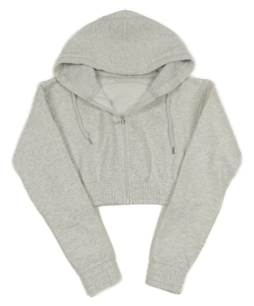 Šedá melírovaná propínací crop mikina s kapucí
