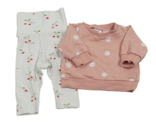 2set- růžová puntíkatá mikina+ bílé lehké tepláky s třešnemi H&M
