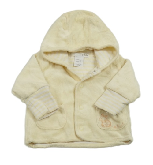 Vanilková sametová propínací podšitá mikina se zvířátkem a kapucí H&M
