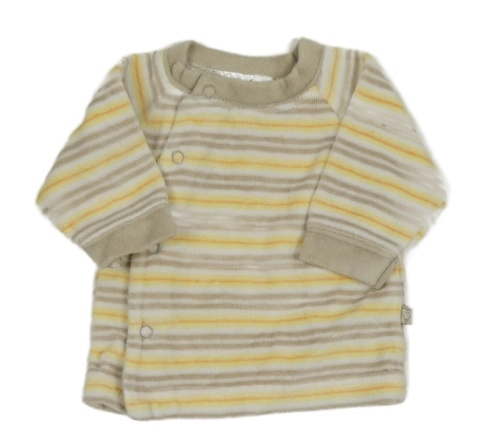 Bílo-hnědo-žlutá pruhovaná sametová mikina Okay vel. 46