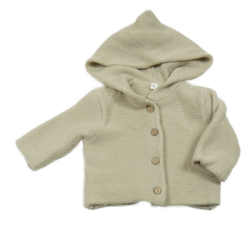 Béžový pletený propínací svetr s kapucí