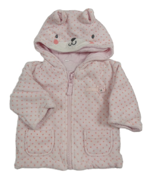 Růžová puntíkatá sametová propínací zateplená mikina s kapucí