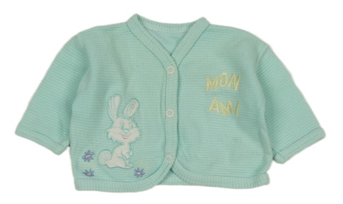 Tyrkysová žebrovaná lehká propínací mikina s králíkem