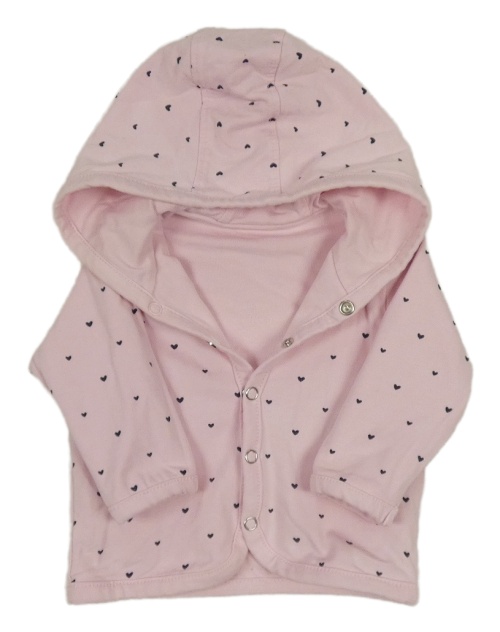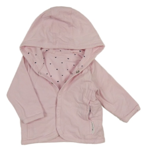 Světlerůžová propínací oboustranná mikina se srdíčky a kapucí
