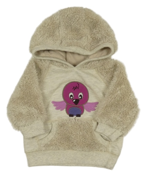 Béžová chlupatá mikina s ptáčkem a kapucí Topomini