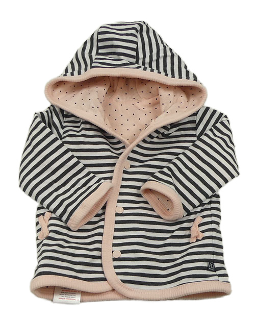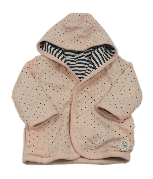 Světlerůžová puntíkatá žebrovaná propínací podšitá oboustranná mikina s kapucí feetje