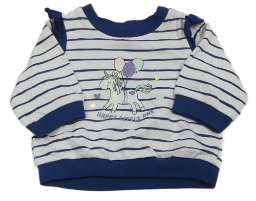 Bílo-tmavomodrá pruhovaná mikina s jednorožcem a volánky Ergee