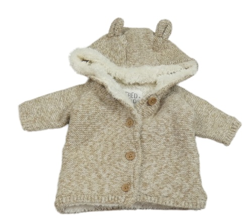 Béžový melírovaný zateplený propínací svetr s kapucí F&F