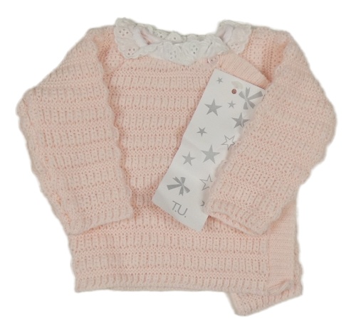 Nové - Světlerůžový propínací svetr s madeirovým volánkem