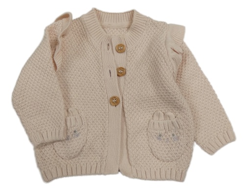 Světlepudrový vzorovaný propínací svetr s čumáčky/kapsami a volánky Mothercare