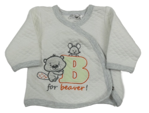 Bílo-světlešedá prošívaná propínací mikina s bobříkem a myškou Ergee
