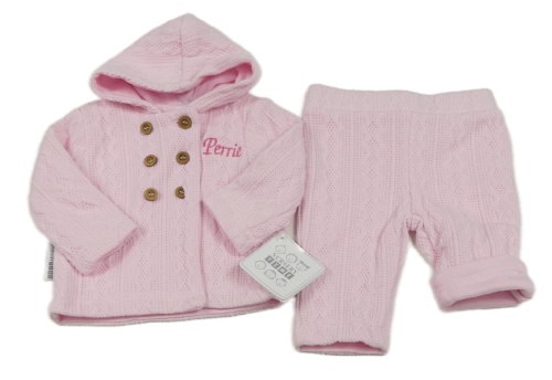 Nové - 2Set - Světlerůžový vzorovaný propínací podšitý svetr s nápisem a kapucí + podšité tepláky