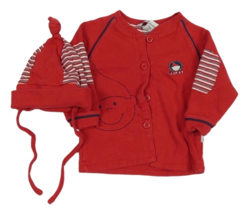 2Set - Červená propínací podšitá mikina s obrázkem + červeno/pruhovaná zavazovací čepice JACKY Baby