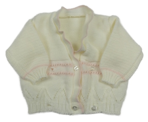 Smetnaovo-růžový vzorovaný propínací vlněný svetr