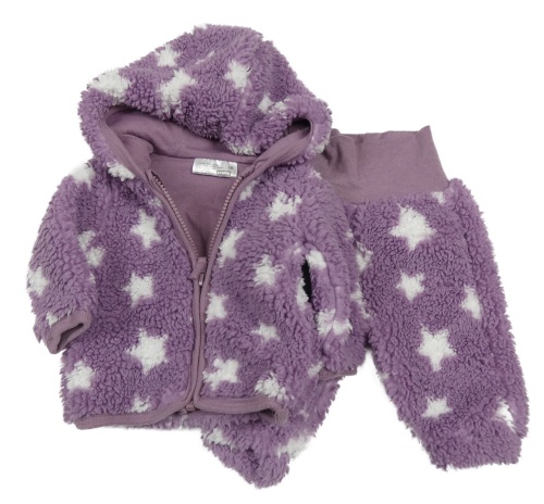 2set- fialová huňatá podšitá propínací mikina s kapucí+ tepláky Ergee