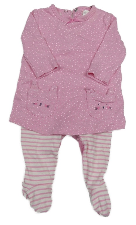 Růžovo-bílá puntíkatá mikina s králíčky a všitým overalem Topomini