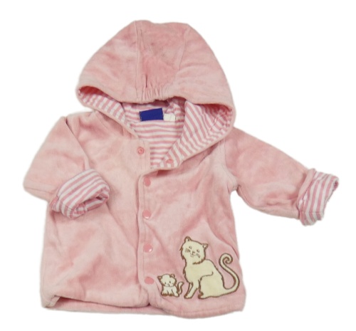 Růžová sametová propínací podšitá mikina s kočkou a kapucí