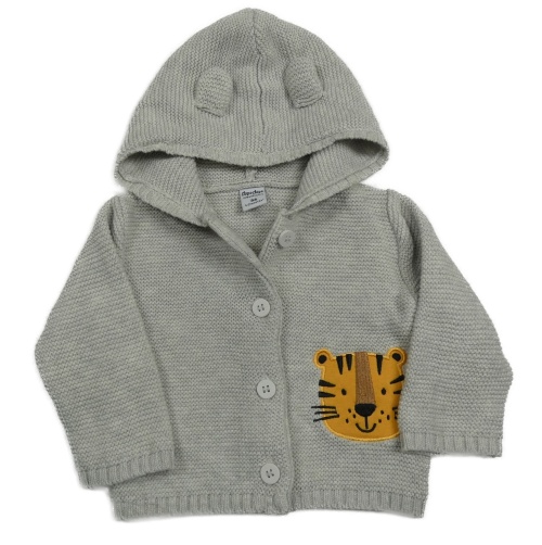 Světlešedý propínací svetr s tygrem a kapucí Dopodopo