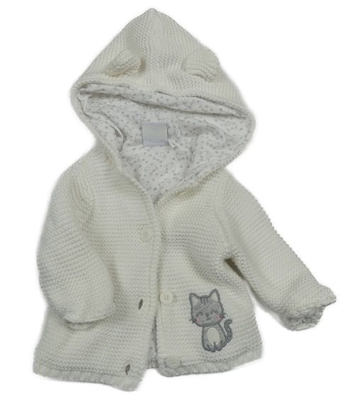 Bílý podšitý propínací svetr s kočkou a kapucí Bubble gum