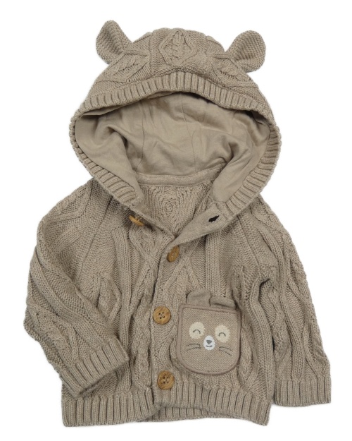 • Béžový melírovaný vzorovaný propínací svetr s čumáčkem a kapucí s oušky Mothercare