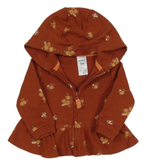 Rezavá žebrovaná propínací mikina s kytičkami a kapucí carter's