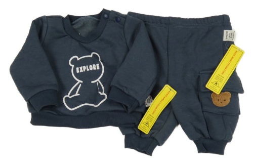 Nové - 2set - Tmavošedá mikina s medvídkem + tepláky s kapsou Shein