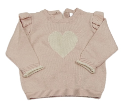Světlerůžový svetr se srdíčkem a volánky M&S