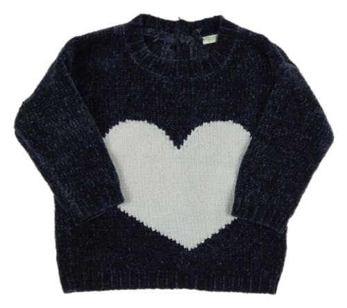 Tmavomodrý žinylkový svetr se srdíčkem Benetton