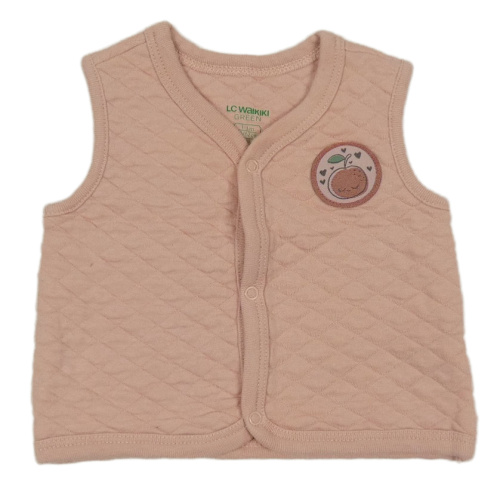 Světlerůžová prošívaná propínací vesta s nášivkou