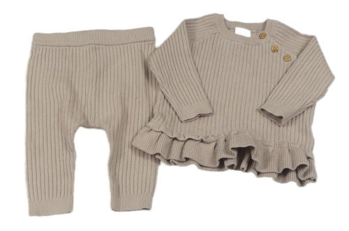 2Set - Béžový žebrovaný úpletový svetr s volánkem + turecké kalhoty Next