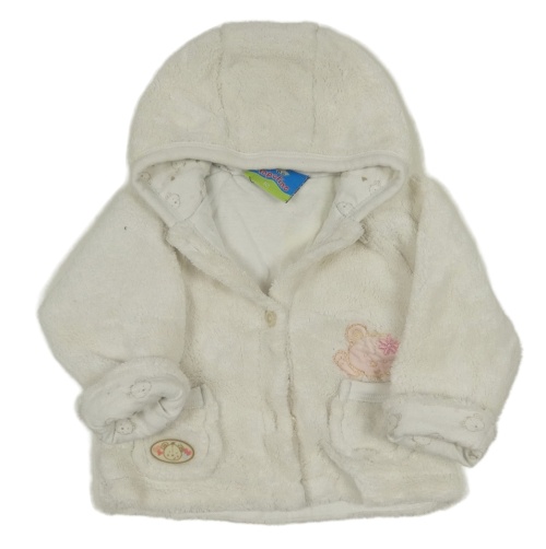 Smetanová chlupatá podšitá propínací mikina s medvědem a kapucí Topolino