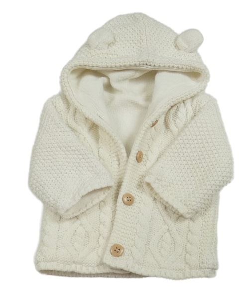 Bílý vzorovaný zateplený propínací svetr s kapucí