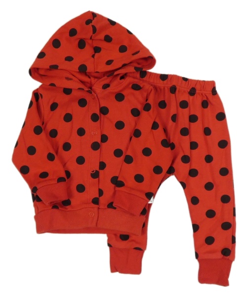 2set - Červená propínací mikina s puntíky a kapucí + tepláky